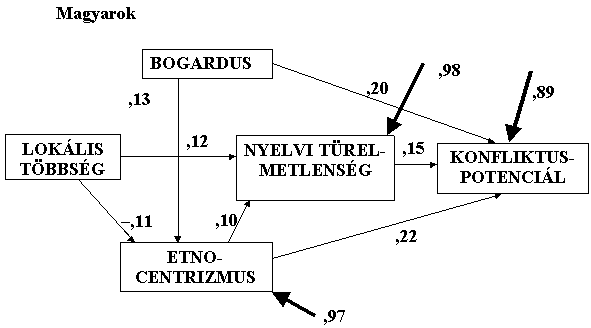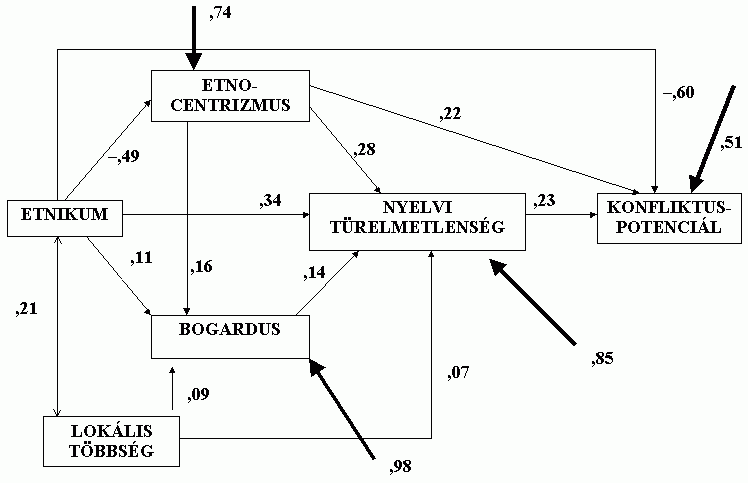 | Az etnikai konfliktusok súlya (rangsor) | -,40 |